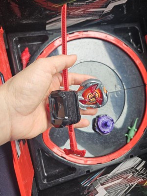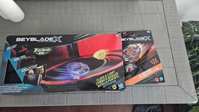 Warning: Only use BEYBLADE X tops with a BEYBLADE X Beystadium. DO NOT LEAN OVER STADIUM when tops are in play. Do not use stadium on tables or other elevated surfaces. Tops may bounce up and hit eye and face.