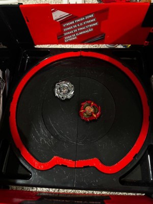 Warning: Only use BEYBLADE X tops with a BEYBLADE X Beystadium. DO NOT LEAN OVER STADIUM when tops are in play. Do not use stadium on tables or other elevated surfaces. Tops may bounce up and hit eye and face.