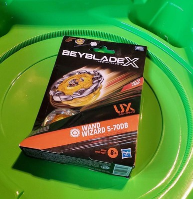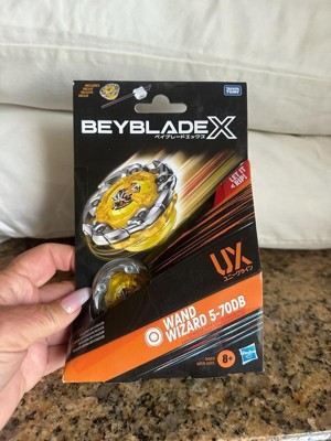 - INTERCHANGEABLE DIE-CAST BLADES: Includes Takara Tomy-designed Beyblade X launcher and top with authentic die-cast metal parts: Wand Wizard 5-70DB UX Right-Spin Stamina Type. Blade and bit both feature strong centrifugal force to prolong spinning