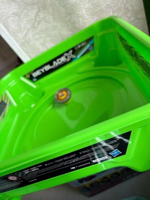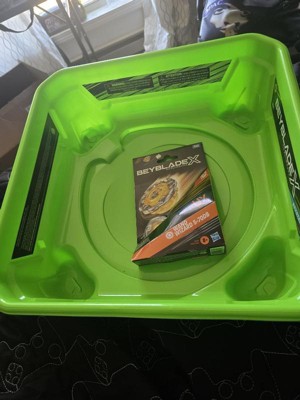 Warning: Only use BEYBLADE X tops with a BEYBLADE X Beystadium. DO NOT LEAN OVER STADIUM when tops are in play. Do not use stadium on tables or other elevated surfaces. Tops may bounce up and hit eye and face.