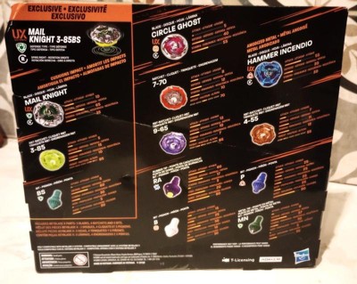 - ]EXCLUSIVE TOP AND SPECIAL FEATURES: Mail Knight top is exclusive to this set, Hammer Incendio blade features a bright anodized coating, RA bit has a speed-optimizing rubber tip, and MN bit has a metal tip for improved stability