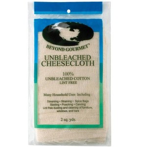 Beyond Gourmet’s 100-percent Unbleached Cotton Cheesecloth is invaluable with kitchen supplies for cooking, roasting, draining, straining, and sieving, without any chlorine, and it’s lint free. Washable and reusable, use it to filter out seeds, skins, fibrous bulk and lumps for silky-smooth sauces, pastes, purees, gravies, and cream soups, and clear broth, stock, syrups and jellies. Perfect with canning supplies, too.