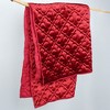 The Caserta Red Reversible Throw by Levtex Home - Birch Hill is inspired by bold vintage fashion. Offered in Red, this design will immediately transform any room in your home. This throw features a rich Red velvet quilted in a beautiful Arabesque Medallion pattern on the front, reversing to a matching microfiber on the back. The Throw (50x60in.) has a microfiber front and back, filled with a cotton-rich filler, and is machine washable. Enjoy this for years to come!