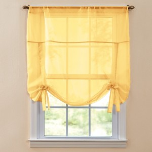 Design:An elegant window treatment that will transform your room with its sophisticated charm. In a simple rod-pocket style, this tie-up shade can be installed with ease. The lovely sheer fabric will filter light and color into your room while still providing window coverage. Choose from a rich selection of hues that will complement any room's style..