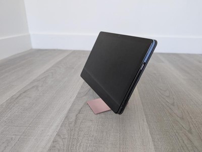 The stand works well for not only tablets but also phones. It is a beautiful light pink color and also has grips on it to ensure it doesn’t slip. The grips are also on the base. It folds compactly so that you can take it on the run if you need to!