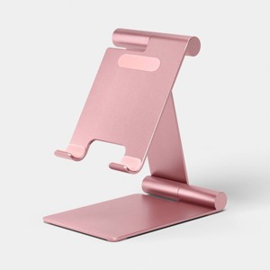 The Bi-Fold Stand for iPads & Tablets in Light Pink by heyday is a nice lightweight stand that can hold your lightweight phones and tablets. The stand is metal, yet light and strong. It also has hinges, so it can be adjusted for your preferred viewing angle. The Bi-Fold Stand holds lighter tablets (without a case) and phones, so ensure it can hold your device when adjusting the stand accordingly. Lastly, the stand can be folded up for easy travel.