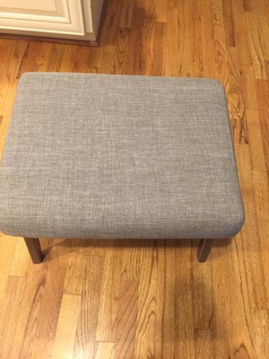 This is a solid, well-constructed ottoman. It is the perfect height for resting your feet while seated on a sofa or chair. (We noticed other ottomans were much higher in height, possibly meant for use as cocktail tables, as well.) The legs are a sleek design of rich wood and the fabric top is a nice neutral shade which would blend in with numerous decors. Very satisfied.