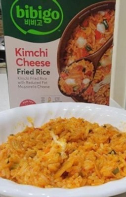 [This review was collected as part of a promotion.] The Bibigo kimchi cheese fried rice is a good portion size. The rice has good texture. Well seasoned with lots of flavor. I found it to be pretty spicy.