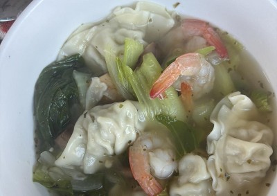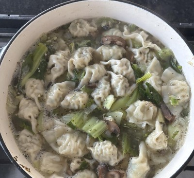 - Mini wonton dumplings filled with savory chicken with soy sauce, garlic and pepper added then combined with vegetables including cabbage, leeks, tofu, onion and green onion all packed into a thin wrapper