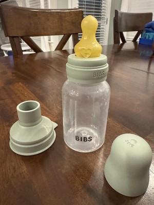[This review was collected as part of a promotion.] Bibs bottles are the only ones my 5 month old will take! I love the sage green color and the size of this bottle. I will say that I did miss in the description that this bottle is plastic and I do prefer the glass Bibs bottles. However, the plastic version is very lightweight and I do like that. My daughter does well with the rubber tips on these bottles and it seems to have good flow. Overall very good bottles! I received an incentive to write this review.