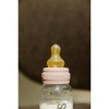 The nipple is produced from natural rubber latex. Since natural rubber latex is a natural material, color variation may occur. Our bottle nipples come in two different flows: a slow flow and a medium flow. The nipple is equipped with an anti-colic valve, that lets out air which reduces air swallowed while feeding.
