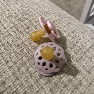 [This review was collected as part of a promotion.] These pacifiers have been a solid choice for my baby. The Blossom and Dusky Lilac colors are so pretty. My baby took to them right away, and these seem to be her favorite compared to others we've tried. I also like the lightweight and airy design it doesn't leave marks on her face after a nap, which is a plus. The two-pack is convenient since one always seems to disappear when I need it most! I received an incentive to write this review.