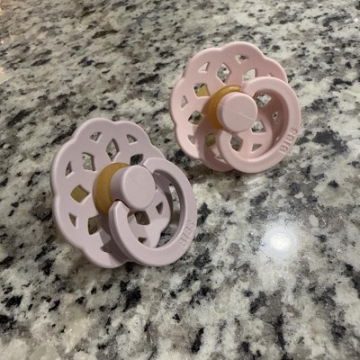 [This review was collected as part of a promotion.] These pacifiers have been a solid choice for my baby. The Blossom and Dusky Lilac colors are so pretty. My baby took to them right away, and these seem to be her favorite compared to others we've tried. I also like the lightweight and airy design it doesn't leave marks on her face after a nap, which is a plus. The two-pack is convenient since one always seems to disappear when I need it most! I received an incentive to write this review.