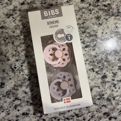 [This review was collected as part of a promotion.] These are the Bibs Boheme pacifiers. There are two colors in the box. There is a blossom color and a dusky lilac color. They have a manuverable piece that baby can hold on to or you can attach a pacifier clip to as well. I did notice that the rubber part looks a tad different on each pacifier. The one that is more of a purple color, lilac maybe, has more clear of a rubber instead. I received an incentive to write this review.