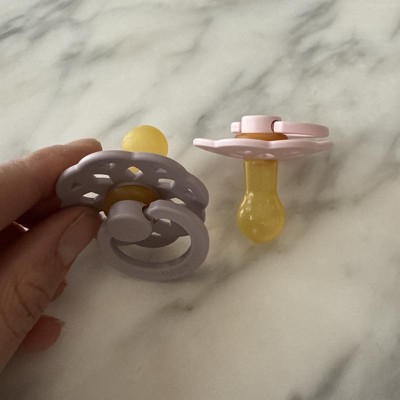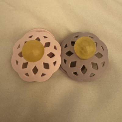 [This review was collected as part of a promotion.] These pacifiers have been a solid choice for my baby. The Blossom and Dusky Lilac colors are so pretty. My baby took to them right away, and these seem to be her favorite compared to others we've tried. I also like the lightweight and airy design it doesn't leave marks on her face after a nap, which is a plus. The two-pack is convenient since one always seems to disappear when I need it most! I received an incentive to write this review.