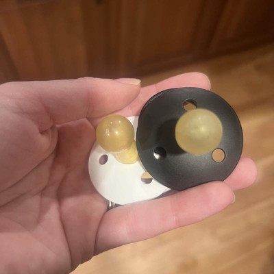 LOVE THESE PACIS! Natural latex rubber, NO silicone or plastic junk putting microplastics in our babies bodies.