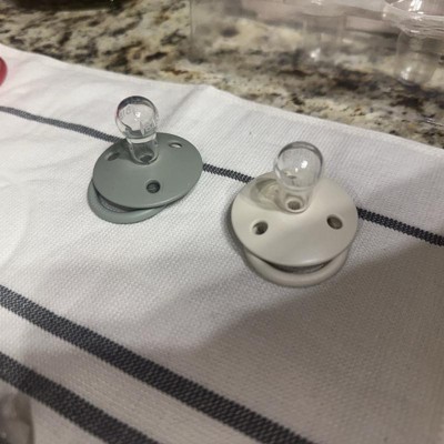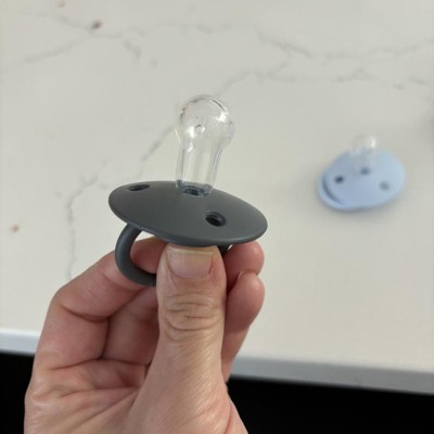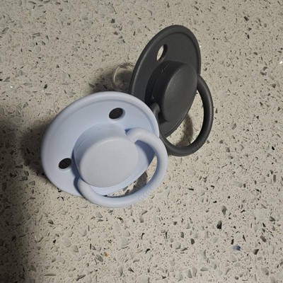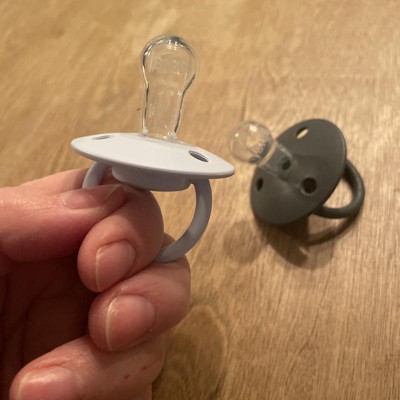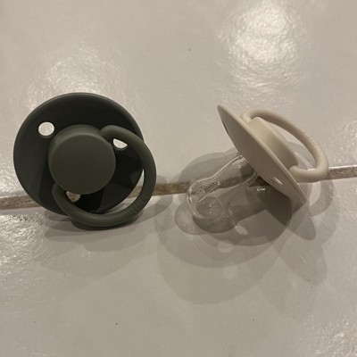 [This review was collected as part of a promotion.] These pacifiers are awesome! Smooth and sleek and silicone, no latex. The ring handles are strong enough to prop the pacifier up to keep it clean. The colors are a great neutral for boy or girl. There are holes for air flow and the shape of the pacifier is unique in that it curves away from baby’s face and not closer to it. I am excited to give these to my grand children . I received an incentive to write this review.