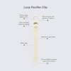 Stop the drop! Designed to keep pacifiers within reach and off the floor, our Loop Pacifier Clip features a handy one-handed clipping mechanism and a flexible silicone ring that securely attaches to all BIBS pacifiers. BPA-Free. Ages 0+ months.