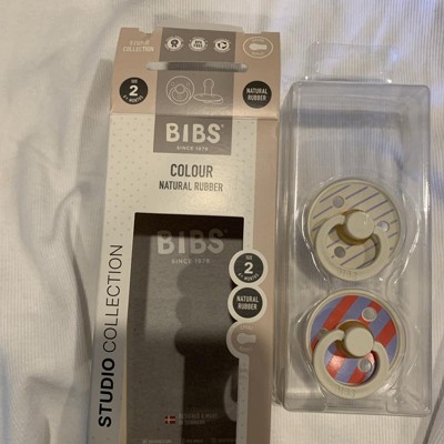 [This review was collected as part of a promotion.] This is the Bibs studio collection colour stripe latex pacifier in size 2 for 6 months and older. This is a 2 pack, however the price is much higher than many other brands. These have a natural rubber top that is round similar to a child feeding from their mother. I love the design and color options available, and these come in a smaller size for brand new babies as well. I received an incentive to write this review.