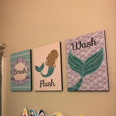 Big Dot of Happiness Let's Be Mermaids - Kids Bathroom Rules Wall Art - 7.5 x 10 inches - Set of 3 Signs - Wash, Brush, Flush