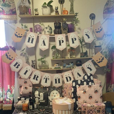 Big Dot of Happiness Pastel Halloween - Pink Pumpkin Birthday Party Bunting Banner - Party Decorations - Happy Birthday