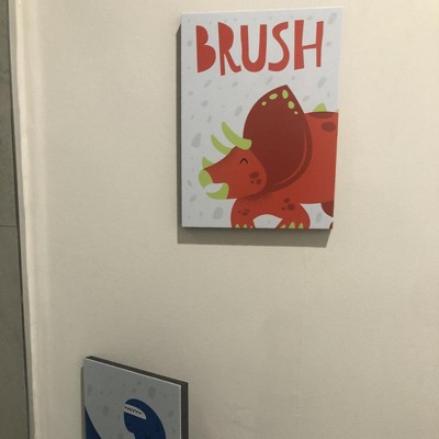 Big Dot of Happiness Roar Dinosaur - Dino T-Rex Kids Bathroom Rules Wall Art - 7.5 x 10 inches - Set of 3 Signs - Wash, Brush, Flush
