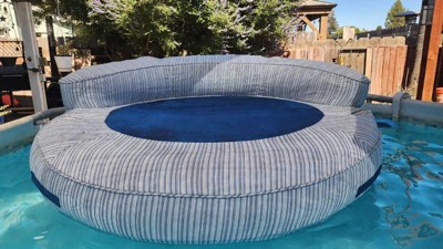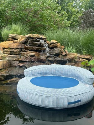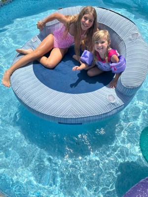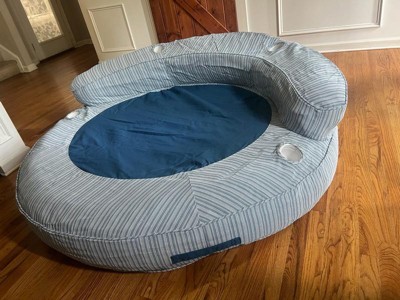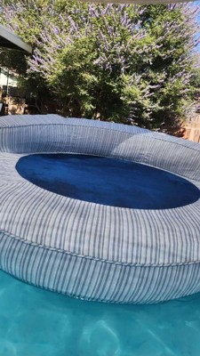 Big Joe Cabanapad Oversized Inflatable Pool Float, Dark Blue & White Stripe, Durable Olefin Fabric, 6 feet