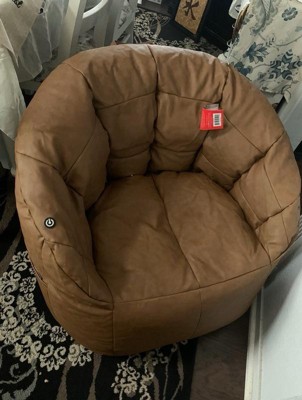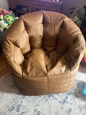 [This review was collected as part of a promotion.] This comfy chair looks and feels like leather and is a neutral color that goes with any decor. As a beanbag chair it is inherently casual, yet the style is a bit elevated. It is easy to clean and features a high back and support for your arms. It has one side pocket for the USB charging cord. Very nice!