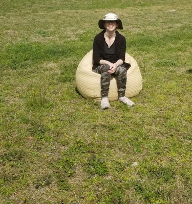 [This review was collected as part of a promotion.] I am reviewing Big Joe Tuffet Outdoor Bean Bag Chair Weatherproof with Natural Weave in exchange for my honest review. What I like about this chair is it is large and can fit an adult easily or children. It has a handle for carrying and has a nice safety feature of a special protected zipper, so children can't open it and climb inside and suffocate. My zipper wasn't closed all the way so there were several bean bag filling pieces inside and it took some maneuvering to close it. The natural weave material is supposed to protect it from outdoor elements. Unfortunately I found the material to be really scratchy and ended up putting a blanket over it in order to sit on it. The cover also snagged a little after a few hours. I feel like this bean bag would only be ok on a carpeted, covered patio or the bottom will snag. I recommend this to anyone that wants large bean bag outside chair, just would be much better with a different style cover.