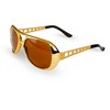 - HERE COMES THE KING!!: Look just like the king of Rock N Roll himself with these sunglasses!! They have a cool frame design!! This pack includes one pair of gold sunglasses with brown tone lenses.