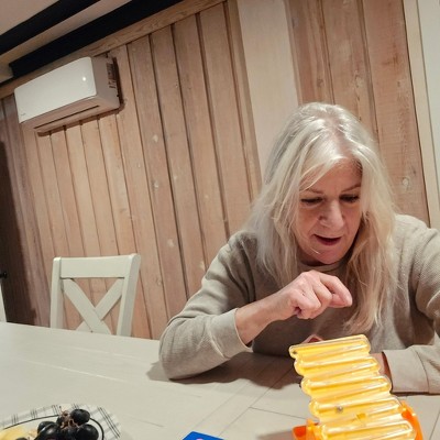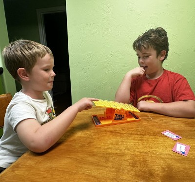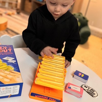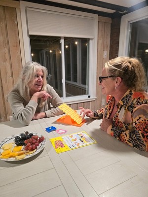 The fact that this game encourages us to shout is a plus for me, because what is game night if we cannot get a pass at yelling and screaming with some fun. It def has us thinking and since the fact is to be quick, you make funny mistakes which makes the game even better. I would like to mention however if playing really fast or rough it can be easy to completely tilt or knock over the game.