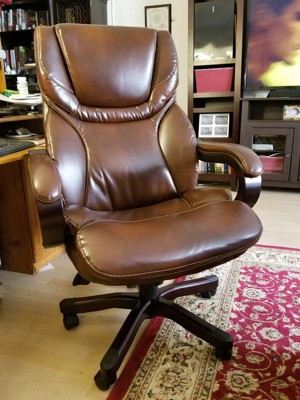 Big & Tall Executive Chair Redwood Leather - Serta: Upholstered, Swivel, Fixed Height, Modern Style