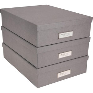 Bigso Oskar Fiberboard Label Frame Document Letter Box - File Organizer Box for Paperwork - Document Storage - 3 Pack