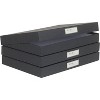 Bigso Sven Fiberboard Classic Hinged Document Box 3 Pack is the perfect way to tidy up your office and store your important documents! It is an attractive decorative feature while organizing your papers, photos, flyers, letters and more. The 1.8 in x 13.2 in x 9.3 in size allows it to hold A4 and US letter size documents while the clever hinged lid preserves and protects your documents. A metal label holder is included so you can write on the insert paper what is stored inside.