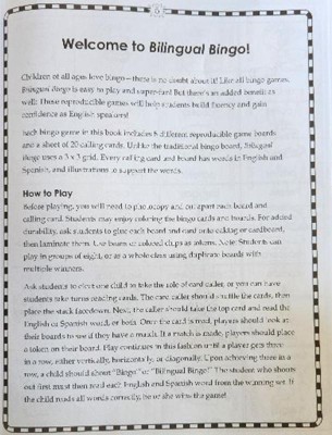 A bilingual spin to the classic game!Help students build fluency and gain confidence as English speakers with this bilingual twist to the classic game. Includes 120 reproducible boards for 15 different themes including: school, home, calendar, animals, transportation, weather and more.