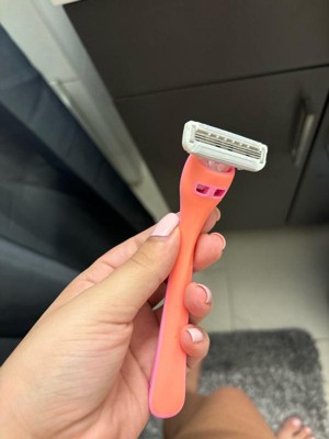 [This review was collected as part of a promotion.] These razors get the job done! The handle is very easy to hold and the blades glide over my skin nicely. No cuts or anything. I also love the bright colors on these razors. Super cute and girly.