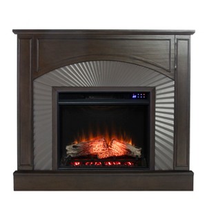 - Two-tone electric fireplace with textured silver surround
