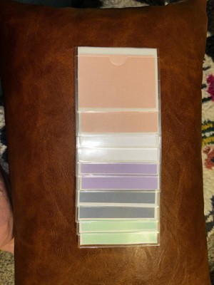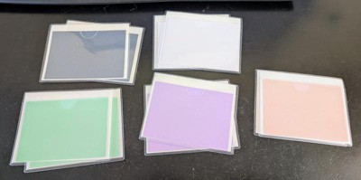 - Includes pink, blue, green, white and purple cards