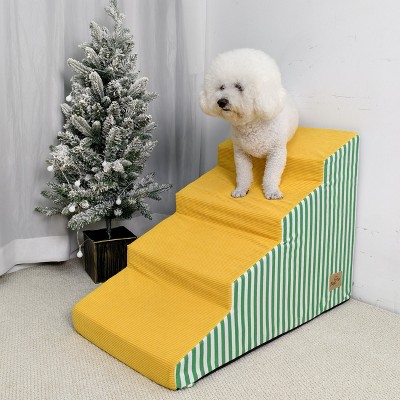 BingoPaw 4 Steps Dog Stairs High-Density Foam Bright Yellow Pet Stairs Ramp with Removable Cover for Sofa & Beds Side