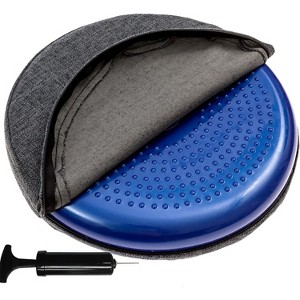 - Ships inflated, includes a hand pump for adjustments. Stability disc size: 13 inches / 33 cm diameter