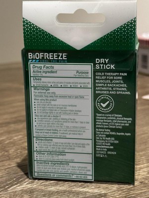 - NEW BIOFREEZE® DRY STICK: Our reliable menthol-based formula, now in a unique, mess-free format for portable pain relief — keeps you going while you're on the go