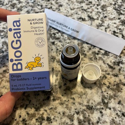 That's specifically why we've developed BioGaia Nurture & Grow Toddler probiotic drops. A 3-in-1 probiotic that supports digestive health, immune health, and oral health for growing tots.* Just 5 drops once daily works naturally in their digestive system to promote regularity and ease occasional tummy issues, such as constipation, gas, and diarrhea.* Additionally, daily use supports immune health while promoting healthy gums & teeth too!*