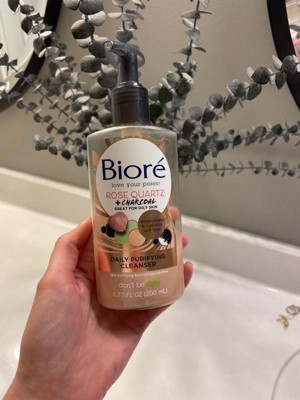 Biore Daily Purifying Cleanser, Oil Free Face Wash, Dermatologist Tested Rose Quartz + Charcoal - Scented - 6.77 fl oz