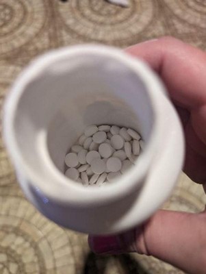 The product works great, but I'm definitely taking a star away due to the packaging. Why in the world does the bottle need to be this large for such a small amount of product? I have no issue with the amount of product and it was labelled in a way that I knew the size of the tablet and the amount inside the bottle. I was still shocked to see the tiny amount of product in perspective to the bottle. I know up and up has similar products in smaller bottles. There's no need for this. It takes up so much room in the medicine cabinet and just seems like a waste of resources.