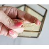 - Bar measures 1.5" x 0.25" and features lovely engraved script along with an embedded faux gem.