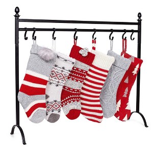 BIRDROCK HOME 8 Hook Christmas Stocking Holder Stand - Black