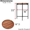 - INDOOR USE ONLY. DIMENSIONS: 16" Length x 16" Width x 22" H. WEIGHT: 5 lbs. COLOR: Wood Top with Black Legs. Assembly required. **Due to the natural wooden top coloring variations may occur from pictured table**