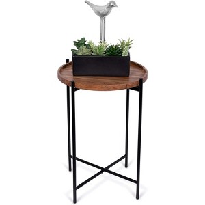 - REMOVABLE TRAY: features a beautiful wooden removable tray top so you can prepare food, coffee or drinks in the kitchen then easily transport them back to the side table base. **Due to the natural wooden top coloring variations may occur from pictured table**