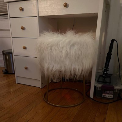 BirdRock Home Round White Faux Fur Foot Stool Storage Ottoman with Pale Gold Legs