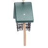 This tail prop suet feeder with suet cages is a great way to attract a variety of birds to your yard. Birds feed easily by grasping the suet cages with their toes. Comes with an eye hook for hanging. This Birds Choice suet feeder is made from recycled plastic, and will hold two suet cakes. A roof top helps protect the suet from the weather and other backyard pests. Measures 9-1/2”L x 5”W x 12”H, 2 suet cake capacity. Made in the USA.